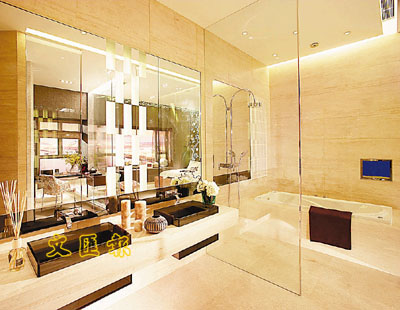 浴室選用頂級設備如Kohler水療按摩浴缸連瀑布式水龍頭、Hansgrohe水療按摩淋浴設備,並配備LCD電視及內置收音機系統,豪華享受延至浴室。