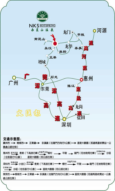南昆山溫泉大觀園地處南昆山山腳,增龍公路旁,交通十分便利;距增城38公里、東莞70公里、廣州90公里、深圳120公里、惠州110公里。南昆山溫泉大觀園與「北迴歸線上的綠洲」南昆山相連成一條「日遊南昆夜沐溫泉」的生態休閒旅遊黃金線路。今年的聖誕假期即將到來,無論來自香港、澳門還是來自珠三角地區,只要到達度假區,就能感覺這裡四面環山,空氣特別清新,晨霧繚繞猶如仙境,不愧為旅遊休閒度假的勝地。