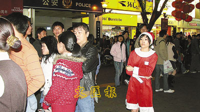■廣州街頭靚麗的聖誕美眉。 本報記者劉揚 攝