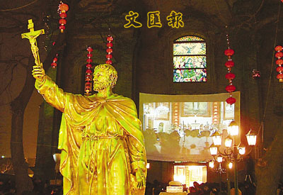 ■24日,聖誕平安夜,北京宣武門教堂裡信眾如潮,教堂大堂和院子裡站滿前來望彌撒的人群。 中新社