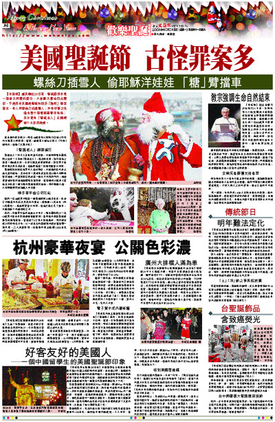 【本報訊】綜合外電消息24日電:聖誕節原本是一個普天同慶的節日,大家歡天喜地四出慶祝,不過原來美國過聖誕特別多「騎呢」罪案發生,有人用螺絲刀怒插雪人;亦有好事之徒偷走數十個耶穌基督洋娃娃;另外更有「聖誕老人」企圖綁架小女孩而被捕。