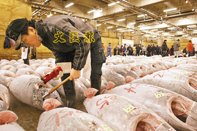 東京築地市場金槍魚批發商表示,金槍魚是魚中之王,通常每星期最少都要吃1次,而且永遠不會食厭。而根據統計數字顯示,日本人吃去全球超過一半的藍鰭金槍魚!