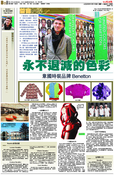 「香港像一位美麗的女子,有時令你歡笑,有時令你憂愁。雖然如此,我們卻愛上香港。香港市場環境競爭劇烈,成本高昂。然而,這是世界時裝中心之一,也是Benetton亞太區的根據地。要跟『佳人』一起並不容易,所以我們全力做到最好。」