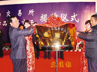 ■保稅區管委會主任張世坤(左)、大連市安監局局長楊吉奎(右)為大連危險化學品交易市場揭牌。 本報遼寧傳真