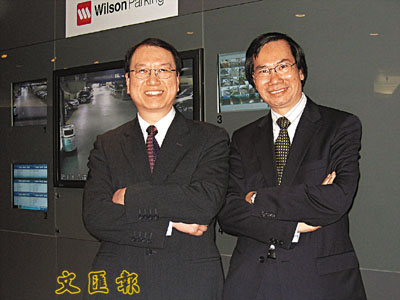 ■蕭漢華(右)表示,「快易泊」可令停車場泊車更暢通。圖中左為威信董事及總經理葉錦誠。本報記者林德芬 攝