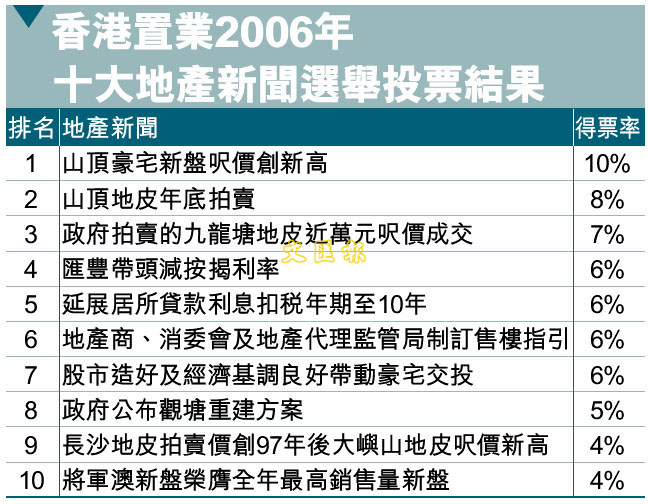 香港置業2006年十大地產新聞選舉投票結果 (圖)