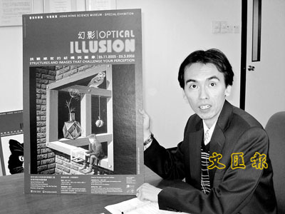 ■陸偉豪手持的幻影海報系列,是物流署2006年於第18屆香港印製大獎的最新得獎作品。本報記者郭曉樂 攝