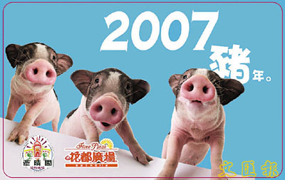 恆基兆業轄下商場,免費送贈2007年金豬賀歲年曆咭。
