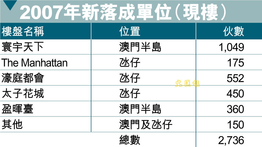 2007年未來澳門住宅供應量(樓花) (圖)