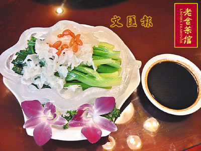 老舍茶館,「茶」字當頭,餐飲也以「茶」為特色,茶餐茶點都別致新穎,獨具特色。素來以京味文化為名的老舍茶館,備足了老北京風味的菜餚,在這裡可以盡享道地的京城美味。