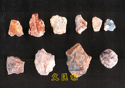 ■古人類用過的石器,有石球、石錘、尖狀器等。