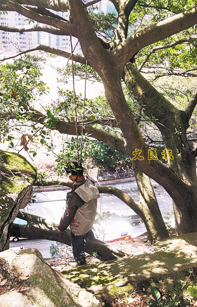 【本報訊】初為人父的年輕電器技工,疑因家庭開支劇增,加上未能適應新工作恐隨時失業,在重重壓力下,竟趁妻子帶同6個月大女兒回鄉探親之際,爬上秀茂坪h寓所對上山坡一棵大榕樹,利用垂下的樹藤纏頸上吊,至昨日被發現時屍身已呈現屍斑,相信已死去一段時間,遺下年幼女兒及妻子頓失所依,其老父及胞姊認屍後傷心不已。