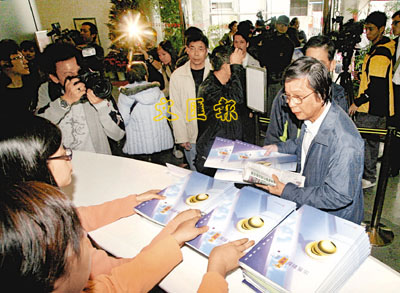 ■重售居屋首日,有市民為免排長龍,早於8時前已到房委會客務中心領取申請表。本報記者梁祖彝 攝