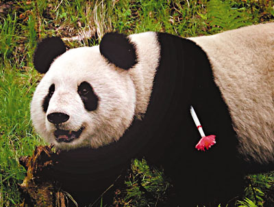 ■「祥祥」在野放之前,被「飛針」麻醉,在身上安裝GPS定位頸圈,以便跟蹤觀察。 資料圖片