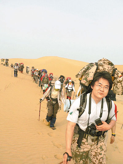 ■在大漠中行進的旅遊者。