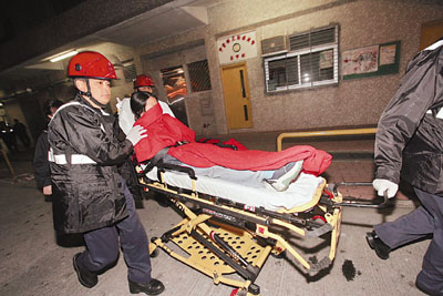 惟婦人此時掙扎更激烈,身體懸空,僅靠沈張兩人各拉著左右手支撐,情況危急,居於對面大廈的一名姓曾(50餘歲)住客,聽得婦人大叫時,發現有人跳樓,義不容辭趕來協助救人,卻見女子身體懸空,即走往一下層抱住婦人雙腿。