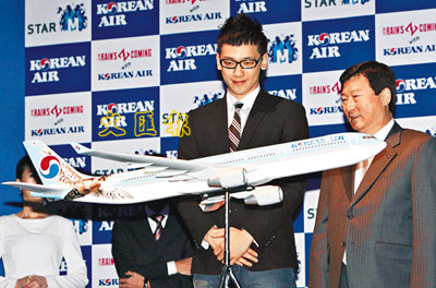 Rain的世界巡迴演唱會得到大韓航空贊助,讓其可以乘坐印有自己肖像的飛機去巡演,昨天Rain就出席贊助的簽約儀式,還收到印有其肖像的客機模型。會上,最吸引人注意的不是Rain的模型飛機,而是他的「出位」髮型。事緣Rain早前因接拍朴贊郁導演的《我是再造人,沒關係吧?》而要將頭髮剪得像「卡通人物」般,當時已經劣評如潮,想不到他在拍畢該片,頭髮再長多後的新形象十足椰殼,搞到Rain成個「傻仔款」,認真爆笑。