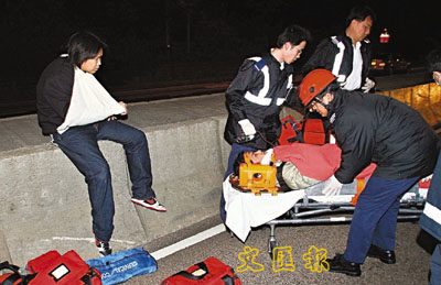 5名傷者均自行爬出車外,部分倒臥路面,其他人則坐在石壆上。有駕駛人士經過,見狀即代為報警求助。交通警員到場未幾,記者亦趕到採訪。當記者拍攝照片時,突然有傷者衝向車邊,企圖撕下行車證及毀壞車牌,並有人追打記者,警員見狀立即喝止。