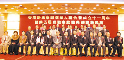 ■香港新馬泰歸僑華人聯合會慶祝成立11周年紀念暨第5屆理監事會成立,賓主合照。 本報記者沈清麗 攝