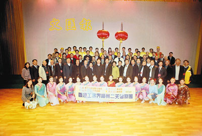 ■香港工業界考察團與梅縣政府人員、歌舞團合照留念。