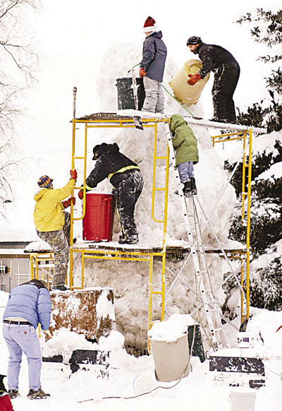 為了加速完成塑造工程,鮑爾斯的鄰居和朋友鼎力支持,幫助他搜集雪塊和塑建雪人的不同部位。