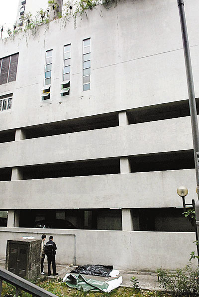 ■疑不堪母親薄責打機,中三男生由海濱花園6樓平台墮下身亡(箭嘴示)。