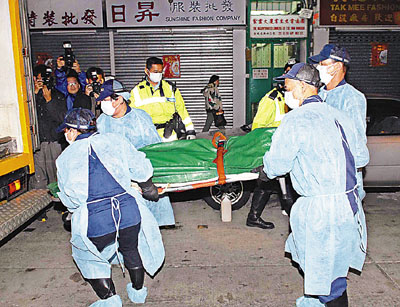 被發現燒炭身亡的男子陳×堅,36歲,據悉患有愛滋病及精神病,昨日警員進入死者伏屍的房間亦如臨大敵,身穿全副保護裝備進行調查,而將死者舁送殮房的仵工,亦穿上保護袍工作。