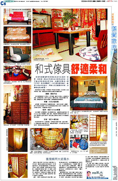 你有沒有想過將家居變成充滿日本色彩﹖其實,香港有一間位於中環的和式傢具設計店,亦可配合家居環境度身訂造,如想家居變成一間TATAMI,現在有機會了。和式傢具顏色偏少,通常以柔和木色為主,再配以花花圖案的咕臣,凸顯舒適柔和感覺。