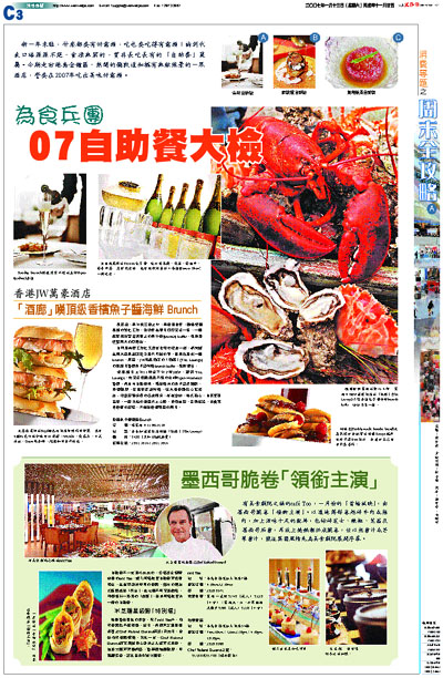 新一年來臨,什麼都要有好意頭,吃也要吃得有意頭!論到代表口福源源不絕、食祿無窮的,實非長吃長有的「自助餐」莫屬。今期走訪港島金鐘區、熱鬧的彌敦道和擁有無敵維景的一眾酒店,誓要在2007年吃出美味好意頭。