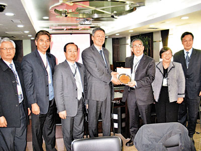 ■代表團拜訪粵發改委副主任張軍(中)進行座談,右起林武、高寶齡、梁英標、張軍副主任、陳鑑林、陳協平、余汝文。