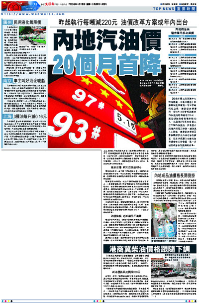內地專家又指出,國際油價持續低迷,國內外貿空間寬鬆,正是理順成品油定價機制的好機會。此外,低油價時也是出台燃油稅的好時機,不過,有關專家預測,政府應該會在國際油價降到每桶50美元以下,才會出台燃油稅政策。