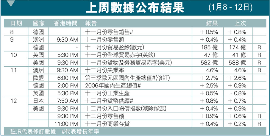 上周數據公布結果(1月8 - 12日) (2007-01-15) (圖)