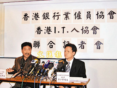 ■香港I.T.人協會會務主任崔世昌(左)認為匯豐的做法,會打擊香港剛轉好的社會氣氛。工聯會提供
