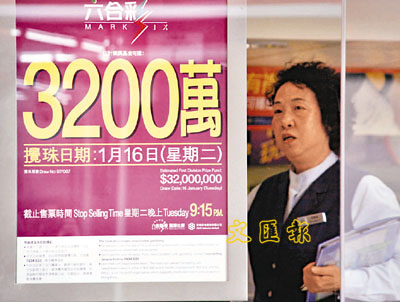 ■今晚的六合彩攪珠將有鉅額多寶,預計頭獎一注獨中可得3,200萬。 本報記者聶曉輝 攝