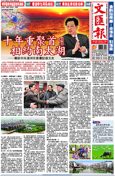在2007年香港回歸十周年的開年之際,香港迎來第一個到港推介的內地黨政代表團——中共湖州市委書記孫文友率團赴香港和澳門,出席在兩地舉辦的為期6天的「2007南太湖浙江湖州.港澳經貿活動周」。 孫文友介紹,隨著區域規劃政策的頒布實施,湖州將會成為新一輪發展的投資熱土,特別是杭湖寧發展帶和環太湖生態發展帶,她們就像是帶著湖州騰飛的兩個翅膀,發動力和後勁將不可估量。