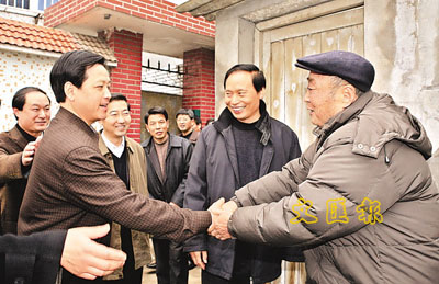 ■孫文友(左一)常常深入基層為民解難,受到當地百姓的愛戴。