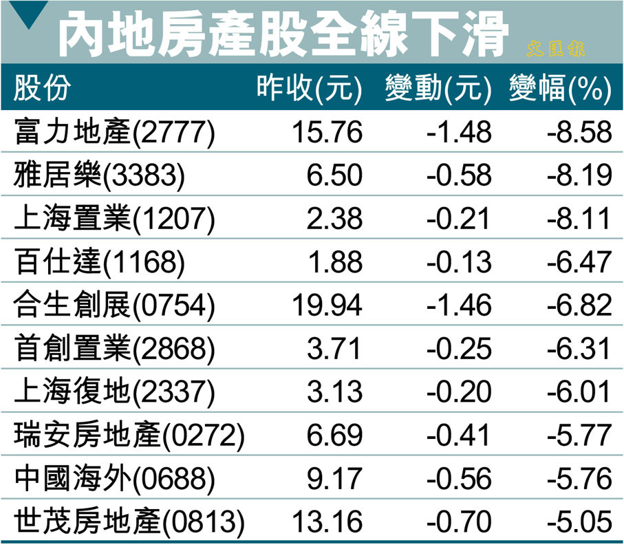 內地房產股全線下滑