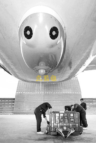 ■工作人員在貨機上裝上反導彈系統,以便進行測試。 美聯社