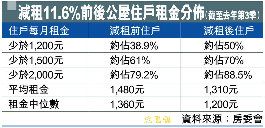 減租11.6%前後公屋住戶租金分佈(截至去年第3季) (圖)