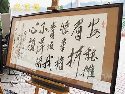 ■莫禮時投得由司徒華題寫的書法。本報記者夏志禮 攝