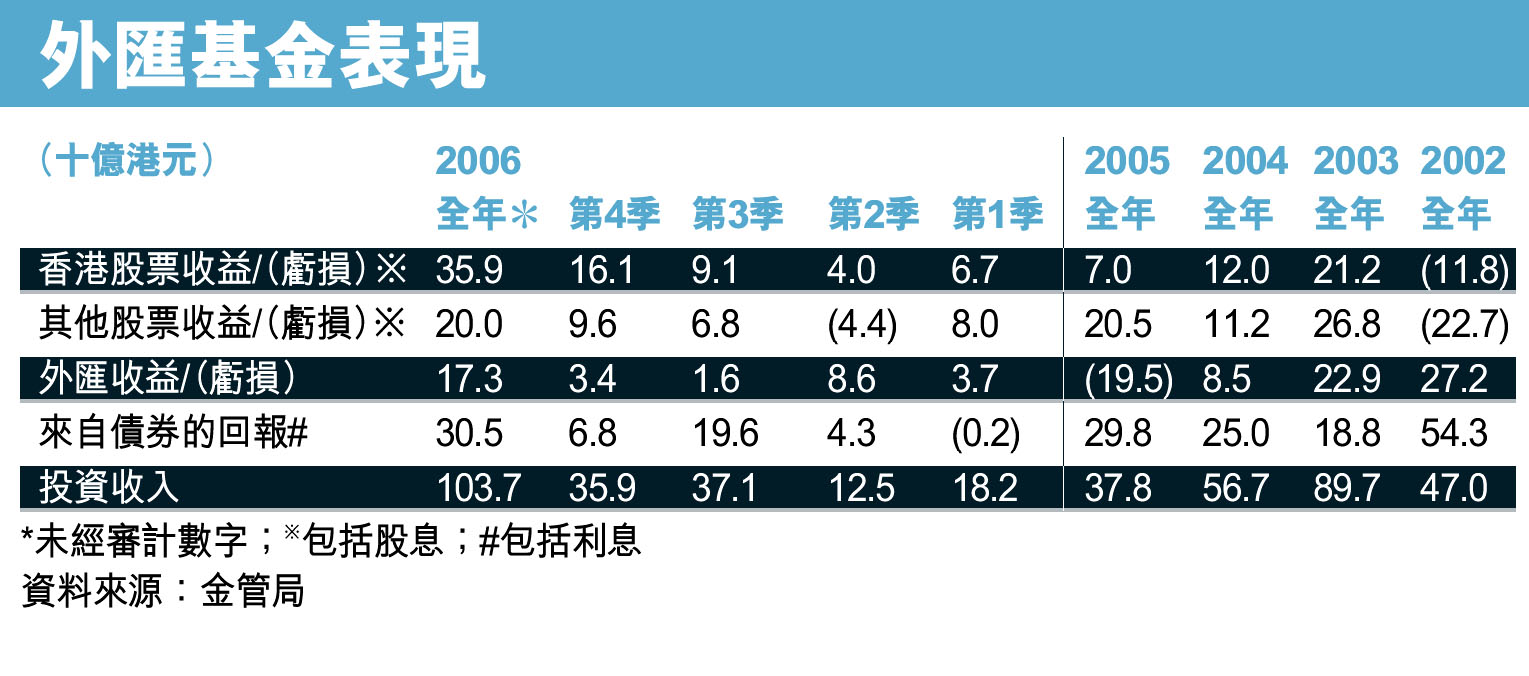 外匯基金表現 (圖)