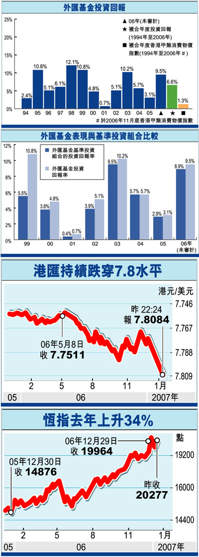 任志剛解釋,去年受惠於股市上揚,但07年的股市前景較去年會更為不明朗,經濟蓬勃發展及流動資金過剩令資產市場表現反覆的情況相信會加劇。全球經濟走勢不明朗,特別是主要經濟體系的通脹前景,令利率走勢變得難以預測。對於這充滿挑戰的環境,金管局在外匯基金諮詢委員會及轄下的投資委員會的領導下,會繼續保持警覺,審慎管理外匯基金。