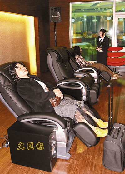 台灣桃園機場日前提供免費按摩設施,幫助遊客消除旅途疲勞。中央社