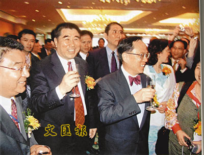■豫港兩地交流由來已久,圖為李成玉(前左二)與特首曾蔭權在2005年的豫港投資貿易洽談會上。