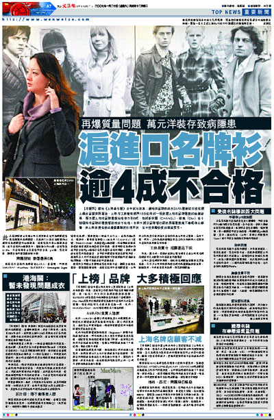 【本報訊】綜合《上海青年報》及中新社消息:繼時尚品牌西班牙ZARA服飾近日被在網上爆出品質有問題後,上海市工商管理部門18日發佈的一項對滬上知名品牌服裝的抽查結果,顯示滬上知名品牌服裝合格率不到6成,包括香奈爾(CHANEL)、迪奧(Dior)等十餘個知名品牌的服裝都被檢出不合格。目前大部分品牌都已經把問題服裝撤下專櫃停止銷售,而上海消費者對此番質量風波反應平淡,至今沒有顧客提出退貨要求。