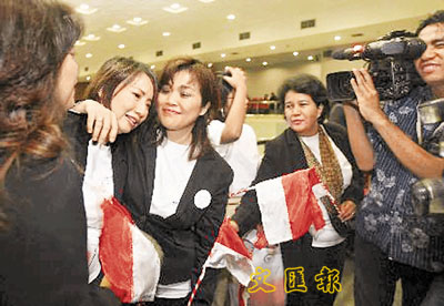 ■7月11日,雅加達國會大廈內,與外籍人結婚的印尼婦女在新《國籍法》通過後喜極而泣。