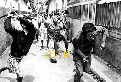 ■九八排華暴動中,失去理智的當地居民窮追毆打華人。