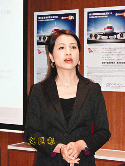 【本報訊】(記者 陳嘉文)東方匯理銀行衍生產品部董事李靄欣(見圖)昨日表示,去年全年市場上推出的股票掛鉤票據(ELN)共有64隻,其中非保本票據佔73%,預期今年將有約70隻ELN,但發行商的活躍度或會減少,並估計今年的ELN將會傾向與中資股掛鉤。