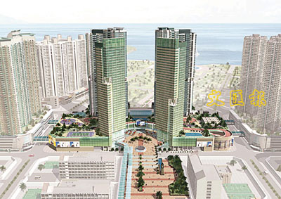 將軍澳56區的發展項目,佔地430,452呎,可建總樓面約1,814,132呎,包括興建4幢樓高40多層的住宅,總樓面達861,120呎,提供1,150個單位,2幢酒店連寫字樓,其中酒店樓面佔625,711呎,提供1,290間房,而寫字樓樓面不少於269,100呎,另於平台上興建一個商場。