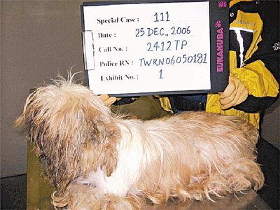 【本報訊】一隻可憐的西施狗(見圖),被主人困在一個空置的單位4年,警方於去年聖誕節,接獲熱心人士舉報,始將缺水缺糧的小狗、從堆滿狗糞及雜物的單位救出,其主人昨承認一項殘酷對待動物、兩項沒有為動物提供潔淨清水及處所、一項沒有為狗隻領取牌照罪名,被判監兩星期、但准以緩刑兩年及罰款3千元;被告表示放棄領回小狗,小狗暫由愛護動物協會(愛協)照料。